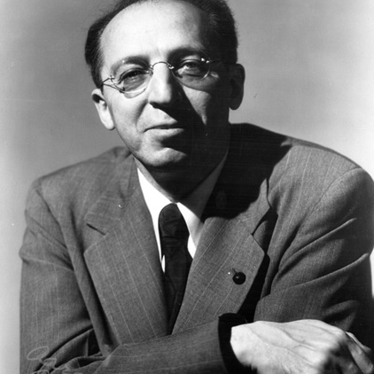 AARON COPLAND, American composer (d. 1990); an American composer of concert and film music, as well as an accomplished pianist. Instrumental in forging a distinctly American style of composition, he was widely known as “the dean of American composers.” Copland's music achieved a difficult balance between modern music and American folk styles, and the open, slowly changing harmonies of many of his works are said to evoke the vast American landscape. He incorporated percussive orchestration, changing meter, polyrhythms, polychords and tone rows. Aside from composing, Copland taught, presented music-related lectures, wrote books and articles, and served as a conductor (generally, but not always, of his own works).