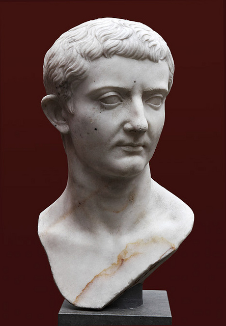 Tiberius was the predecessor to Caligula and he was certainly the appropriate curtain-raiser. His sexual excesses were widely known, especially when he “retired” to Capri, governing Rome via correspondence, and becoming the patron saint of that future Gay Mecca. Suetonius reported that Tiberius trained young children, whom he called his “minnows,” to stay between his legs while he was swimming so they could lick and nibble him until he came. Supposedly he used un-weaned infants for the same purpose on land. Suetonius reports that Tiberius can be credited with the “daisy chain” or spintriae – a conga line of people joined front and back in sexual congress.