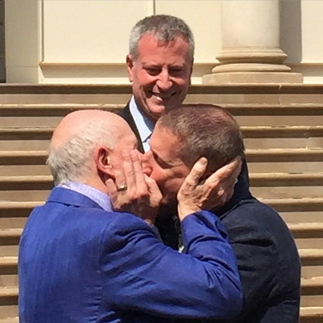 In 2015, in celebration of the Supreme Court decision in favor of marriage equality, the couple renewed their vows at a ceremony officiated by Kirdahy's former college roommate, New York City Mayor Bill de Blasio.