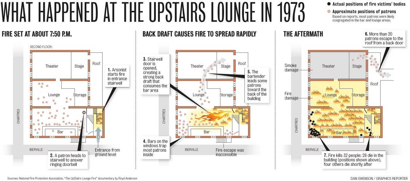 Thirty-two people were killed by the fire or by smoke inhalation. The most likely suspect, a man who had been thrown out of the bar earlier that day, was never charged. It was the deadliest arson attack in New Orleans at that time and one of the deadliest attacks on LGBT people in United States history.