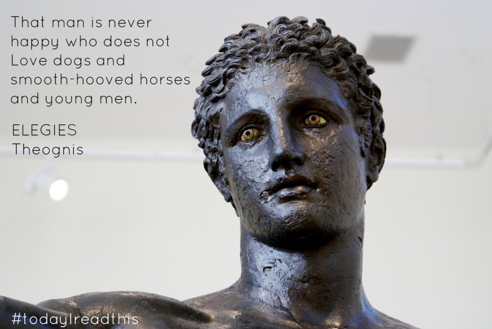 THEOGNIS, Greek poet, born (d: ?); This elegiac poet was an aristocrat who apparently lost his wealth and property during one of the many conflicts between the aristocracy and the lower classes that are characteristic of this period in the Greek states. Embittered by these losses and convinced that all virtue resides in aristocracy, Theognis expressed in a number of poems his hatred for plebeians and his nostalgia for the past when the power of aristocracy was unquestioned. The poems are really moral precepts addressed to his young boyfriend, Cyrnus. Given his reactionary daydreams, if Theognis were reincarnated today, he’d probably be one of those highly moral Republicans who are arrested in Washington (or Minneapolis) restrooms every now and then.