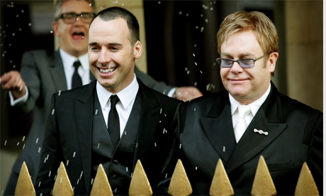 Elton John and David Furnish at their civil partnership ceremony at the Guildhall in Windsor.