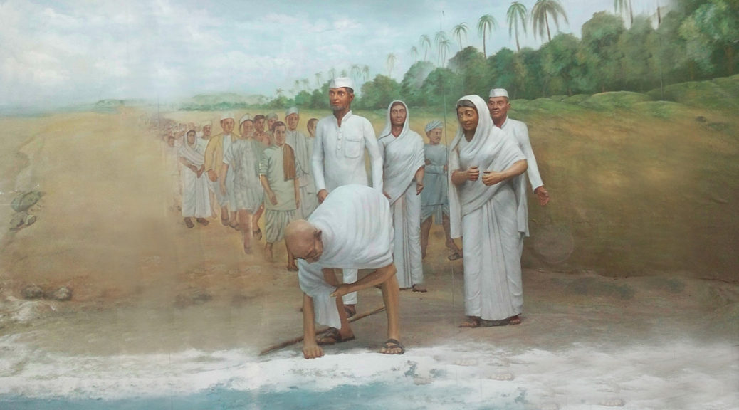 Gandhi raises a lump of mud and salt and declares, “With this, I am shaking the foundations of the British Empire.” Thus he begins Salt Satyagraha.