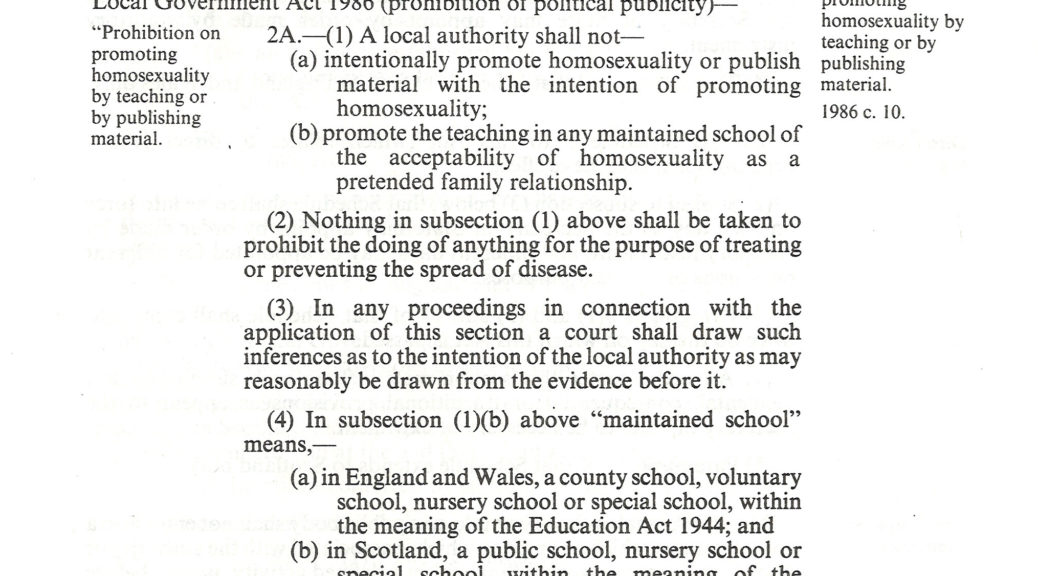David Cameron subsequently issued an extraordinary apology on behalf of the Conservative Party for legislation banning the promotion of homosexuality in schools. He said the party had ‘got it wrong’ when it introduced Section 28 in the late 1980s. Yeah…that’s one way of looking at it.